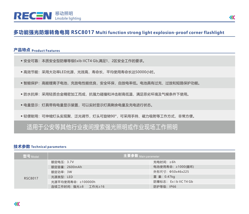 多功能強光防爆轉角電筒 RSC8017